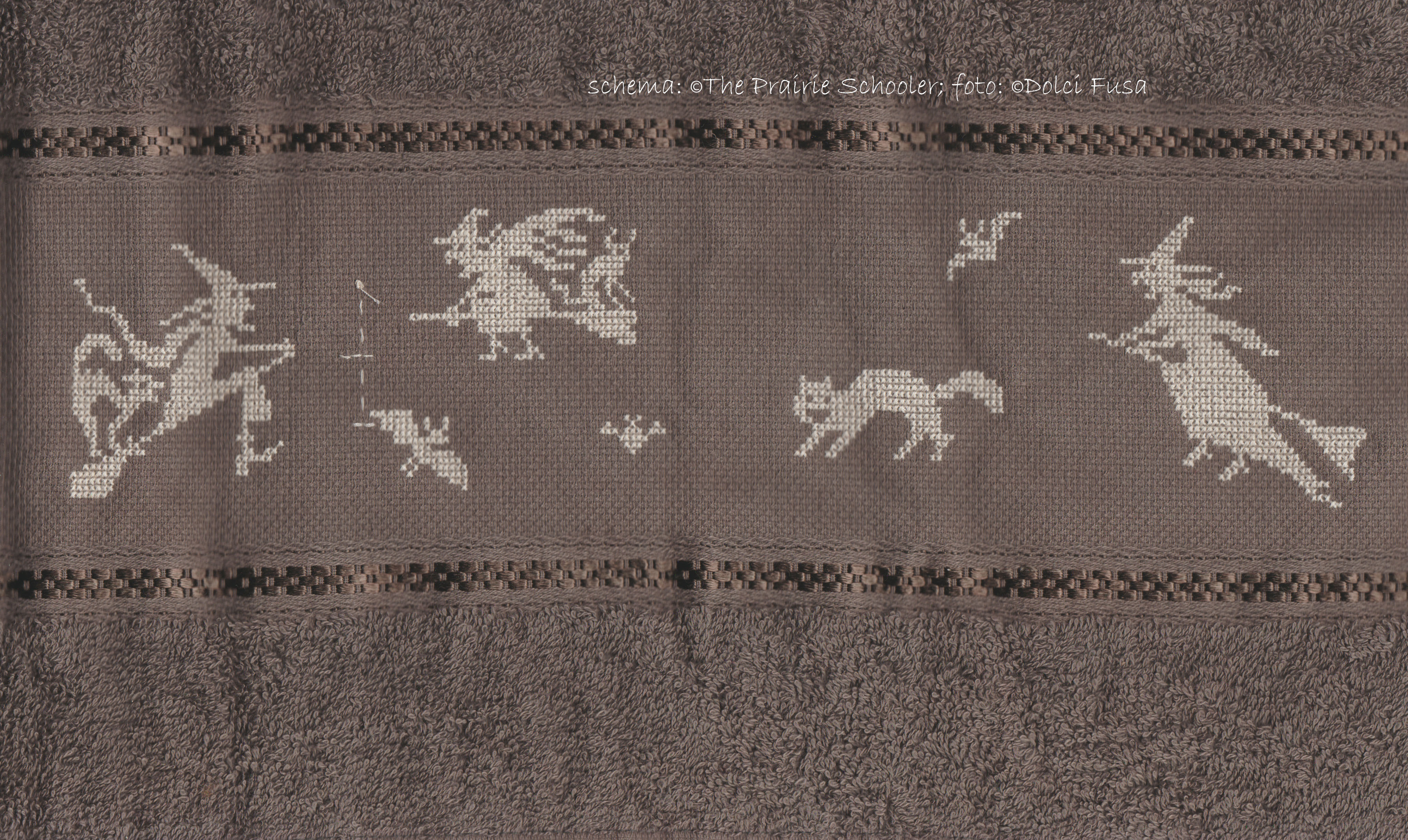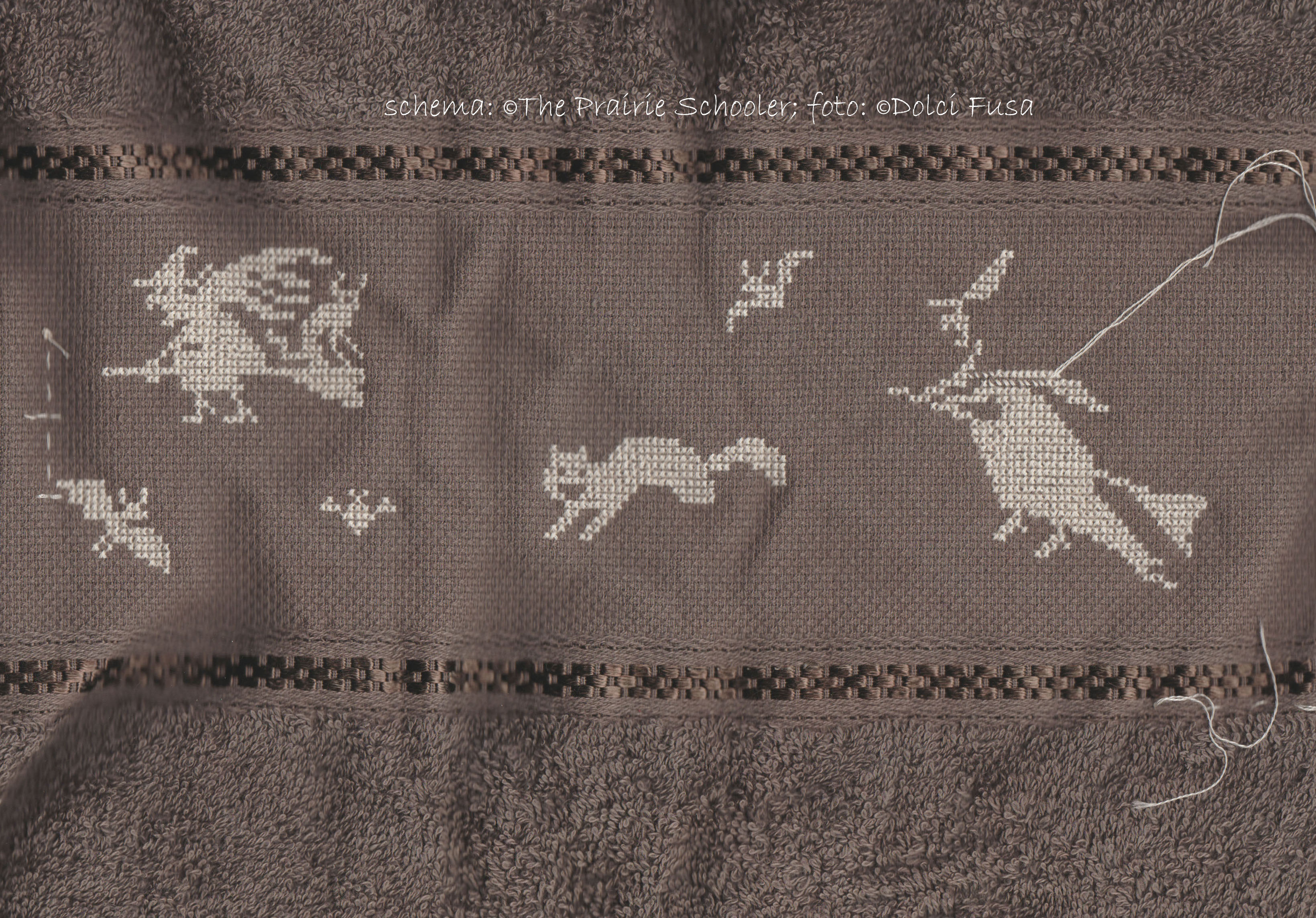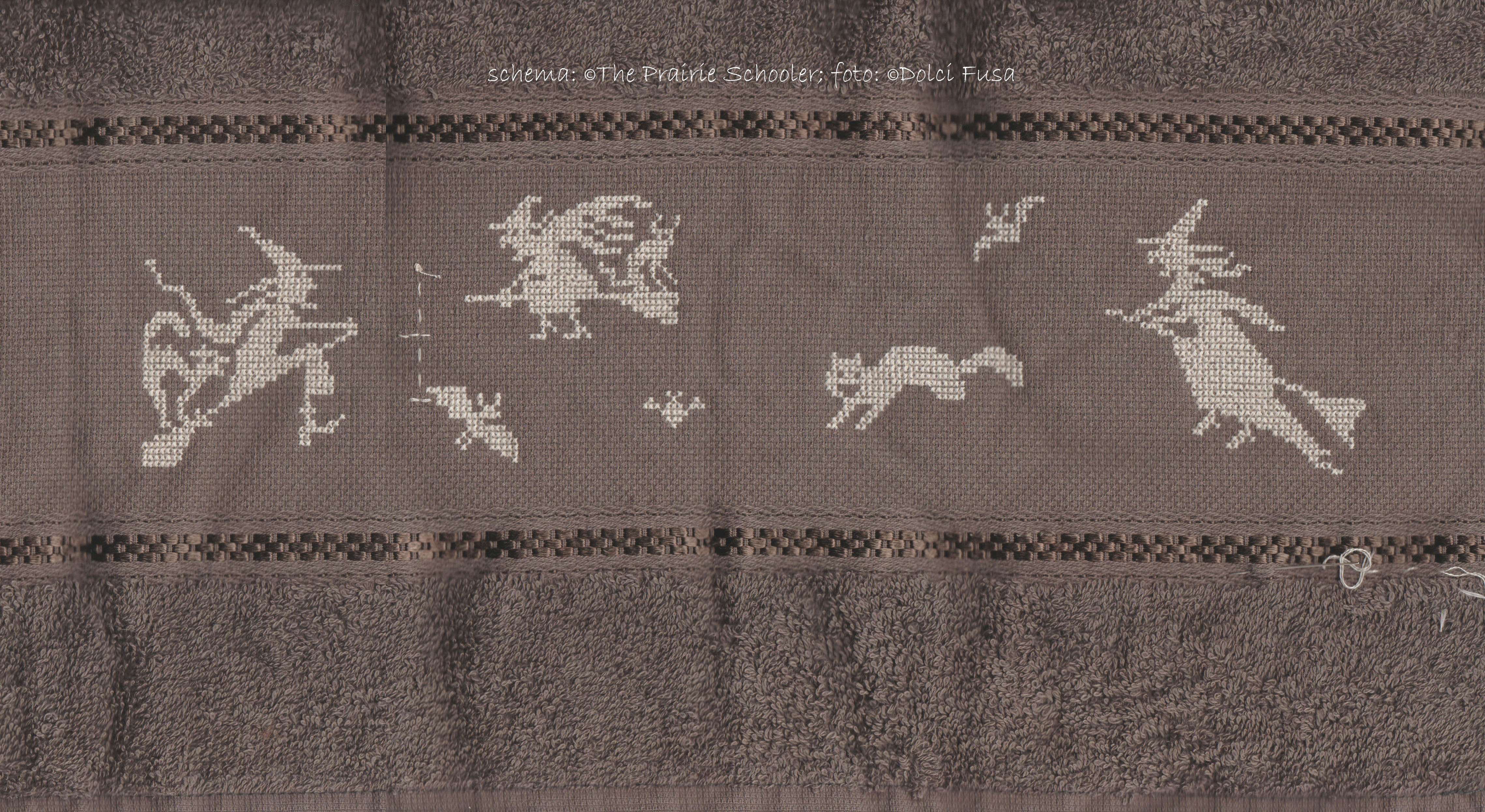Ho scelto e sistemato lo schema da realizzare, e ho cominciato centrando il ricamo sull'asciugamano grande. |